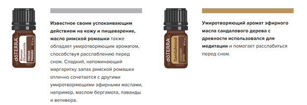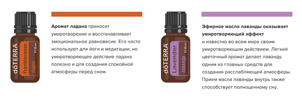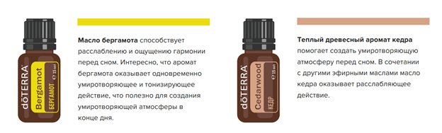 Успокаивающее действие: Эфирные масла, такие как лаванда, ромашка и бергамот, известны своим успокаивающим эффектом. Их ароматы помогают снизить уровень тревожности и стресса, что способствует расслаблению перед сном.